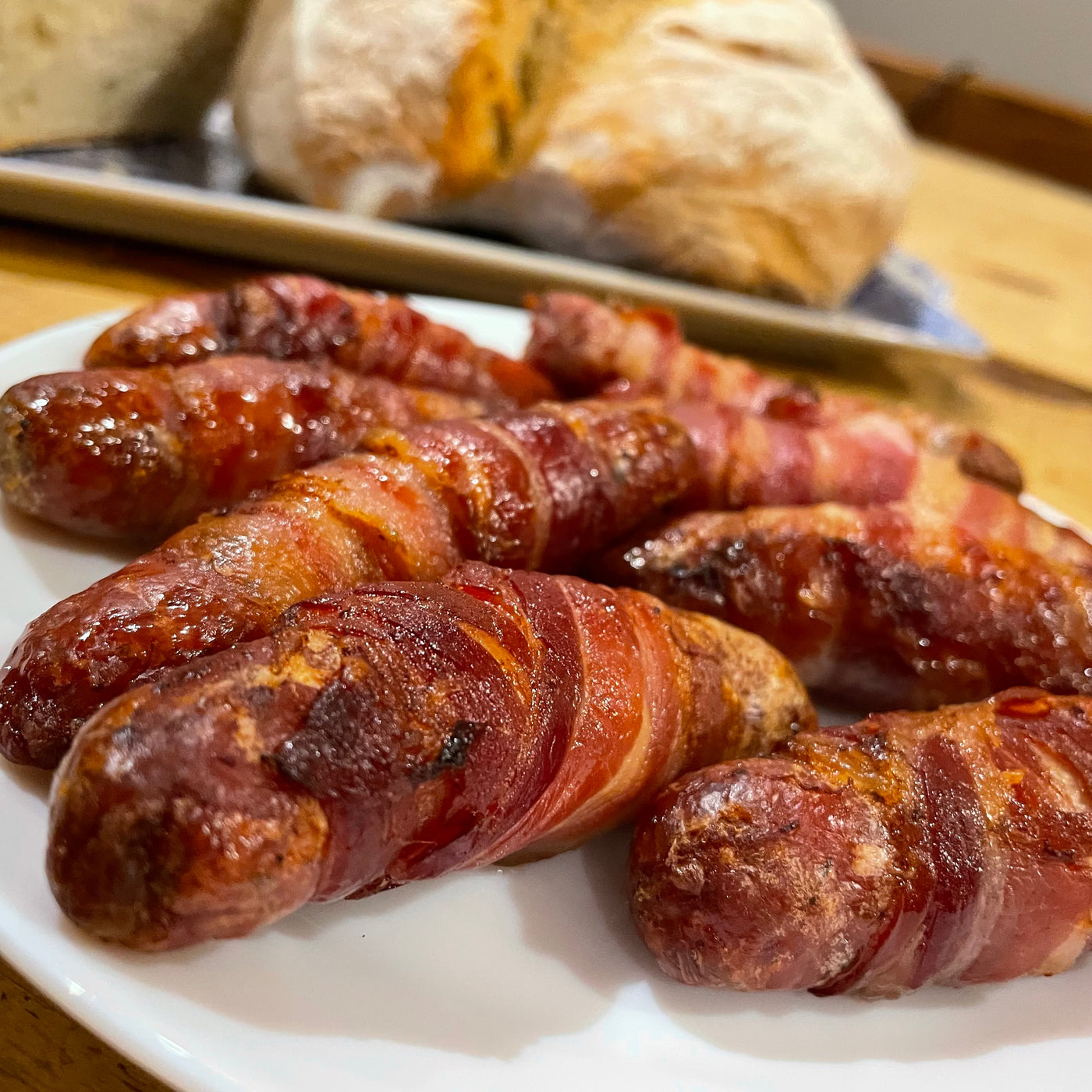 These Organic Pigs in Blankets unite our quality organic plain pork cocktail sausages with premium organic streaky bacon in a time-honoured combination. Each piece balances succulent, well-seasoned sausage with a crispy bacon exterior, delivering layers of savoury flavour. Perfect for festive occasions, sophisticated entertaining, or as an effortless crowd-pleaser, they require minimal preparation yet yield impressive results. Our careful sourcing of quality pork ensures authentic taste and reliable excellence—a trusted choice for discerning hosts. 8 per pack.